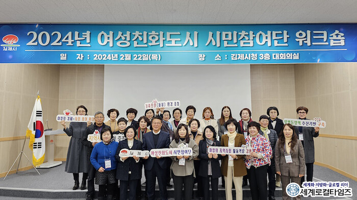 [세계로컬타임즈 조주연 기자] 전북 김제시가 “22일 시민참여단 40여명이 참석한 가운데 돌봄과 안전이 구현되는 여성친화도시 조성을 위한 워크숍을 갖고 각각의 역량을 다졌다”고 밝혔다.