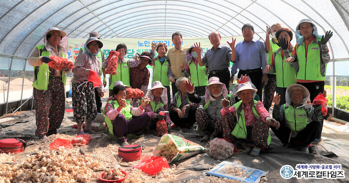 석포마을 노인일자리 영농사업단은 20명의 어르신들이 1000평의 밭에 마늘, 양파를 생산해 로컬푸드 등을 통해 판매 후 수익금을 나눠 노인들의 소득원이 되고 있다.