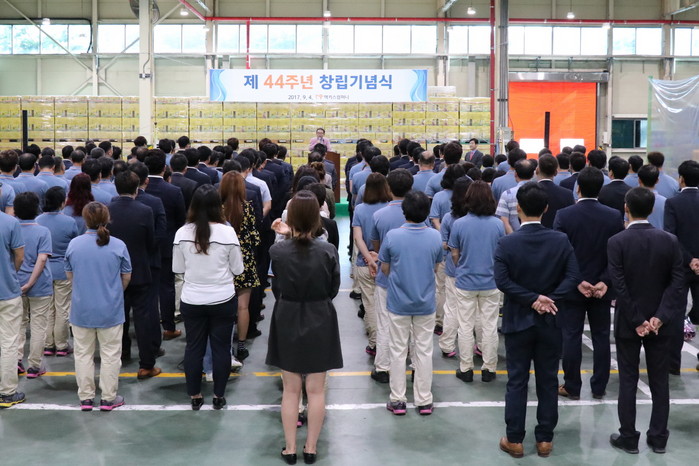 [세계로컬신문 오영균 기자] 충청권 주류 대표기업 맥키스 컴퍼니(옛 선양 / 회장 조웅래)는 4일 오동 공장에서 임직원 200여명이 참석한 가운데 창립 44주년 기념식을 열었다.