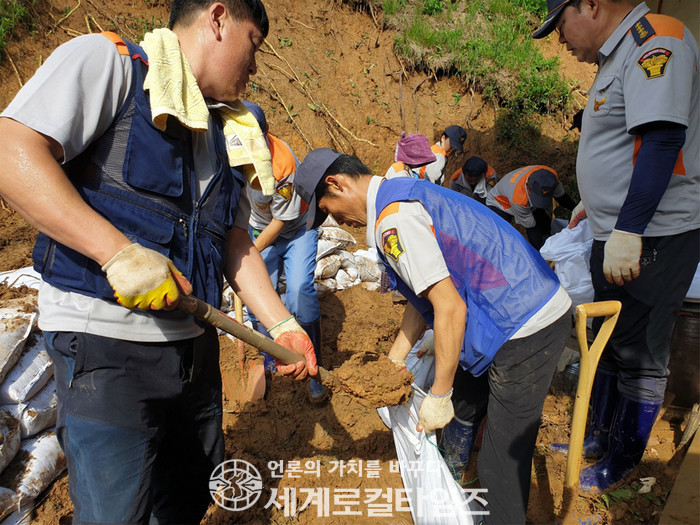[세계로컬타임즈 조주연 기자] 충남 예산군 의용소방대가 빠른 수해복구를 위해 팔을 걷어붙였다.