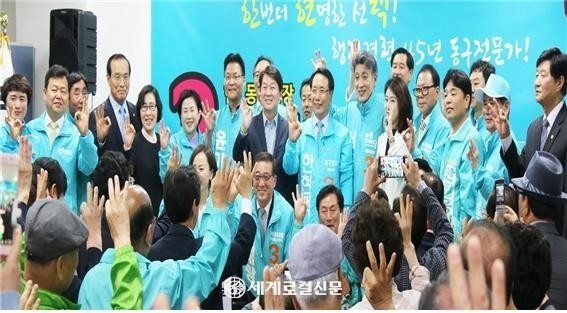 이날 개소식엔 바른미래당 안철수 서울시장 후보와 김중로 최고위원, 김삼화, 신용현 국회의원, 남충희 대전시장 후보 등 주요 인사들이 대거 참석해 축사 등을 통해 개소식을 축하했다.