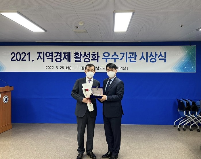 [세계로컬타임즈 박종현 기자]진도교육지원청(교육장 이문포)은 22개 전남 시·군교육지원청 중 가장 높은 점수를 받아 2021년도 지역경제 활성화 우수기관 시상식에서 최우수기관으로 선정됐다고 29일 밝혔다.