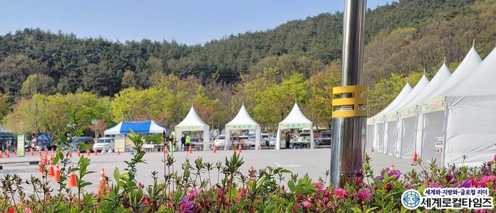 | ▲2021년 김제모악산축제 ‘차콕쇼핑’ 행사장에 관광객이 단 한명도 보이지 않고 있다. (세계로컬타임즈 DB) |