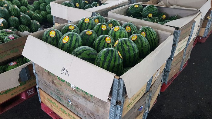 | ▲ 농산물도매시장에 수박이 싱싱하게 쌓여있다. (사진=인천시 제공) |