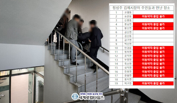 [세계로컬타임즈 글·사진 조주연 기자] 전북 김제시가 “시민들의 목소리를 듣겠다”며 매년 진행하는 소통행사가 장애인·노인 등 사회적 배려가 필요한 주민들을 무시한채 수년째 이어지고 있다. 행사 장소 63%가 이동 약자 접근이 불가능한 곳에서 진행됐다.