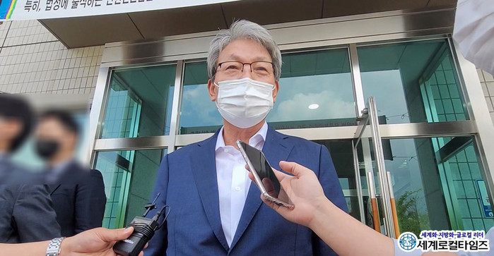 [세계로컬타임즈 글·사진 조주연 기자] 정치자금법 위반 혐의와 직권남용 권리행사 방해 혐의로 재판에 넘겨진 유진섭 전북 정읍시장이 15일 첫 재판에 출석했다. 유 시장은 공소사실을 모두 부인했다.
