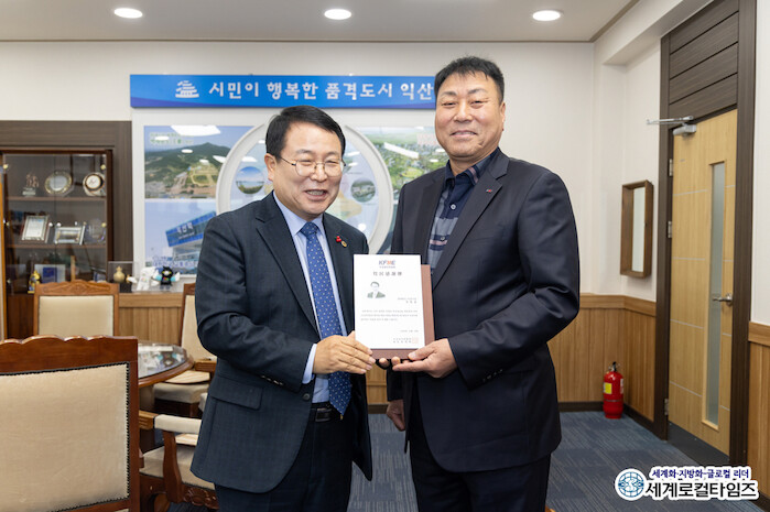 [세계로컬타임즈 조주연 기자] 전북 익산시가 정헌율 익산시장이 소상공인연합회로부터 2023년 초정대상 목민감사패를 수상했다”고 20일 밝혔다.