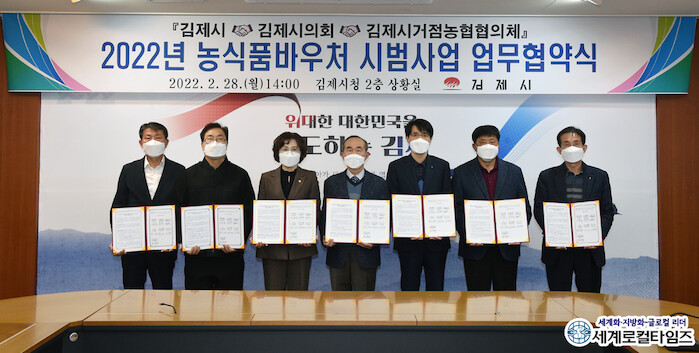 | ▲사진은 김제시의 2022년 농식품바우처 시범사업 업무협약식 ⓒ김제시 |