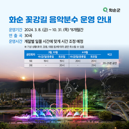 ‘화순 꽃강길 음악분수’ 운영 안내 포스터(화순군 제공)