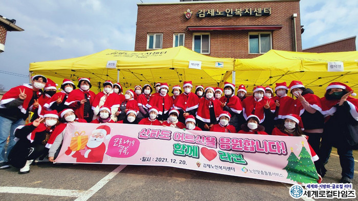 [세계로컬타임즈 조주연 기자] 전북 김제노인복지센터가 노인맞춤돌봄서비스 어르신 1000명과 함께 ‘코로나19 극복, 산타도 어르신을 응원합니다! 함께라면’ 행사를 진행했다.