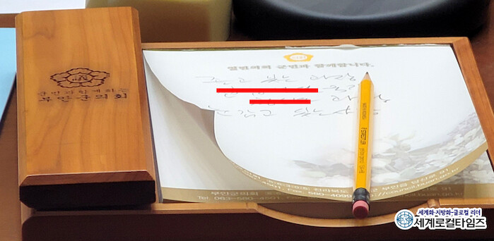 [세계로컬타임즈 글·사진 조주연 기자] 전북 부안군의회 한 의원이 본회의 도중 “졸고 있는” 부안군 간부 공무원 명단을 작성했다.