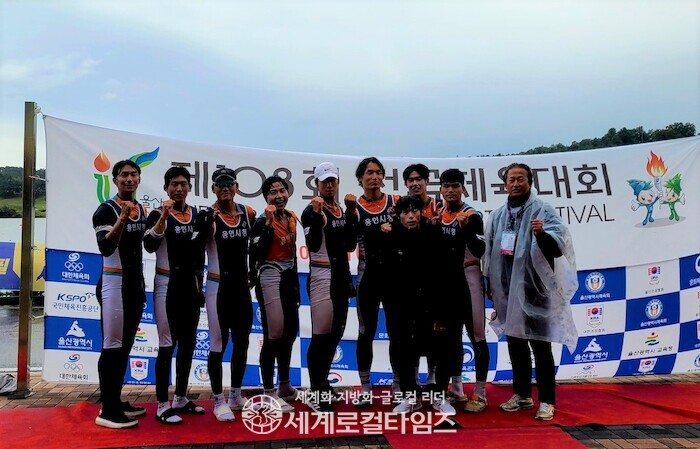 | ▲ 용인시청 직장운동경기부 조정팀의 민성호·문필승·김형욱·손성민·이성관·이성민 선수가 제103회 전국체육대회 조종 에이트 종목에서 은메달을 차지했다. (사진=용인시) |