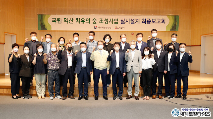 14일 익산시에 따르면 지난 12일 국가무형문화재 통합전수교육관에서 정헌율 익산시장, 김수흥 국회의원, 황성태 서부지방산림청장 등 40여 명이 참석한 가운데 ‘국립 익산 치유의 숲 조성 실시설계 용역 최종보고회’가 개최됐다.