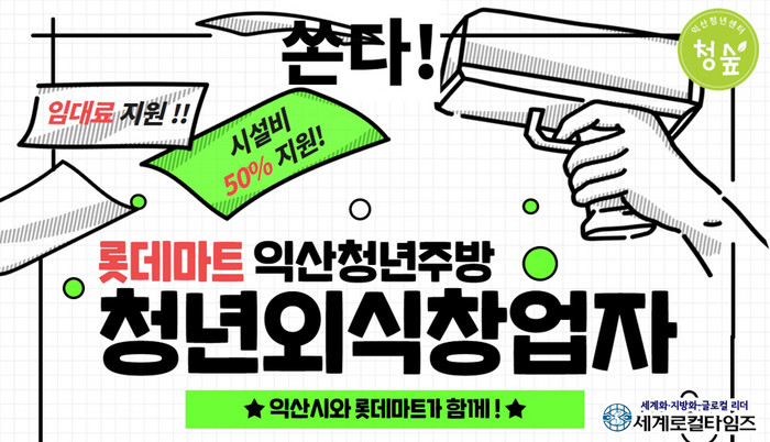 [세계로컬타임즈 조주연 기자] 전북 익산시가 지역 대형마트 내 청년주방을 운영할 청년외식창업자를 내달 7일까지 추가 모집한다.