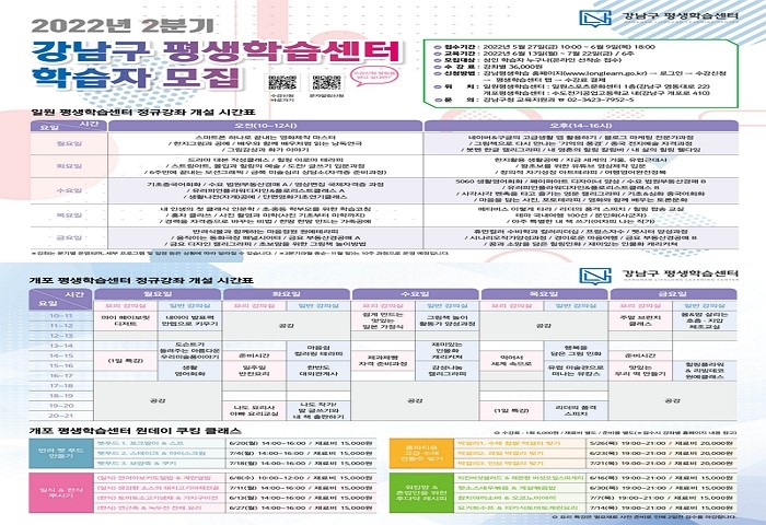 | ▲2022년 2분기 평생학습센터 학습자 모집 안내 (사진=강남구) |