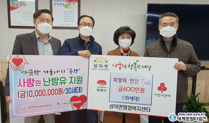 26일 김제시에 따르면 성덕면 지사협은 지난 23일 성덕면 행정복지센터를 찾아 1000만원 상당의 난방유와 600만원 상당의 연탄을 지원했다.