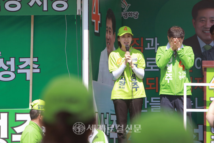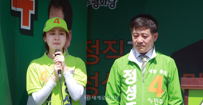[세계로컬신문 조주연 기자] 정성주 민주평화당 김제시장 후보의 외동딸 정겨운씨가 자신의 아버지를 지지해 달라며 유세 현장에서 눈물로 호소했다.
