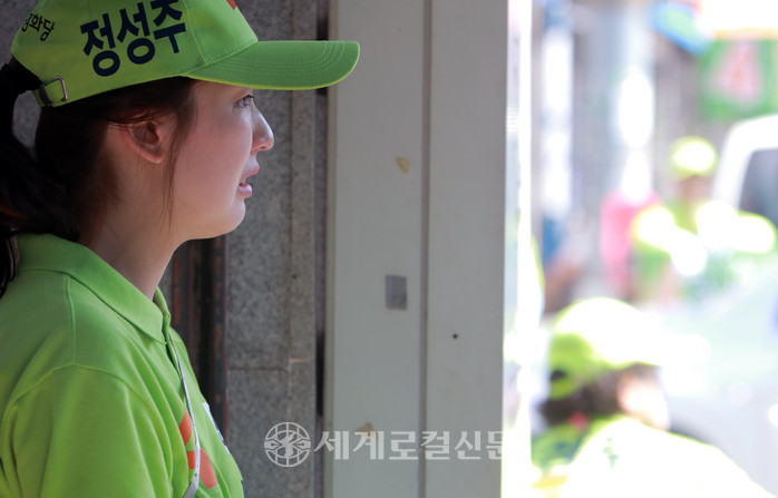 정겨운 씨는 유세차량에 올라 정성주 후보 지지를 시민들에게 간곡히 부탁했다.