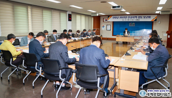 [세계로컬타임즈 조주연 기자] 전춘성 전북 진안군수가 21일, 각 부서장이 참석한 가운데 2022년 신규시책 검토 보고회를 주재했다.
