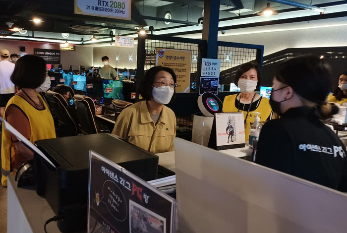 | ▲ 정혜란 창원시 제2부시장이 PC방 방역실태 현장 점검을 실시하고 있다. (사진=창원시) |