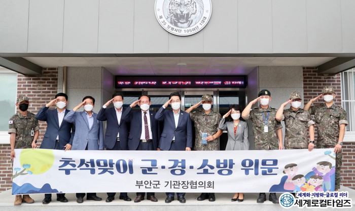 [세계로컬타임즈 조주연 기자] 전북 부안군 기관장협의회가 14일 군 장병과 전·의경들에게 소정의 위문품을 전달했다.