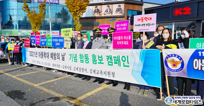 21일 김제시에 따르면 김제경찰서, 김제교육지원청이 함께한 가운데 지난 19일 가두캠페인 형식의 아동학대 예방 홍보 캠페인이 진행됐다.