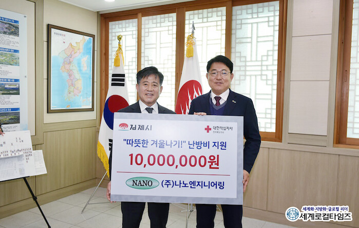 [세계로컬타임즈 조주연 기자] 나노엔지니어링이 혹한기에 취약한 가정을 위해 써달라며 14일 대한적십자사 전북지사를 통해 김제시에 김제사랑상품권 1000만 원을 기탁했다.