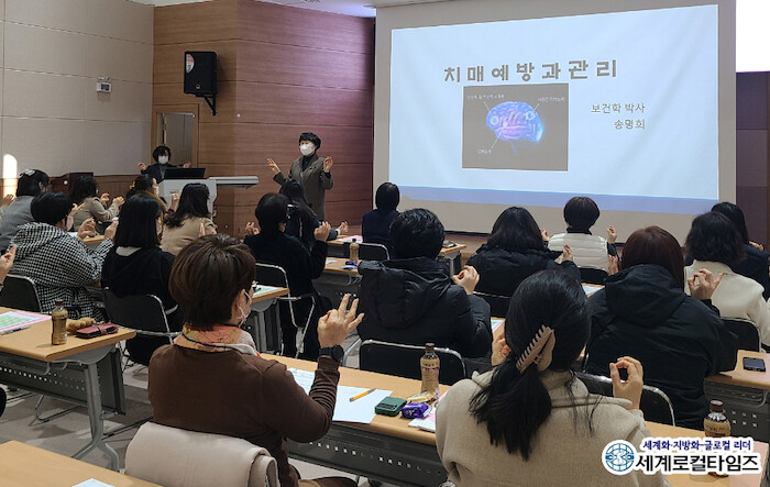 전북과학대 송명희 교수를 초빙해 노인건강을 주제로 ▲치매 바로알기 ▲치매예방활동 ▲치매파트너에 대한 교육과 실전에서 사용할 수 있는 활동 실습을 가졌다.